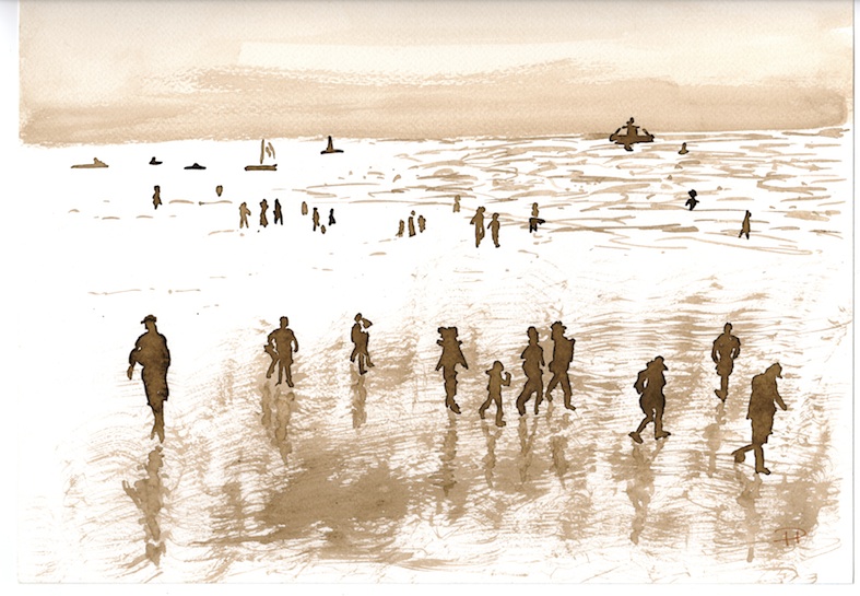 Circa 130 anni separano i due pittori che sono l’espressione di due epoche diverse e perciò portatori di visioni diverse. Ardito e velleitario può quindi apparire l’accostamento. Tuttavia, a prescindere dall’approccio storico e tecnico, è possibile individuare punti comuni delle rispettive sensibilità ripensando ad alcune predilezioni ben note di Cesare Dell’Acqua. Ed è così che fra le varie opere esposte da François Piers figurano alcune che si allacciano a temi cari all’artista piranese trattati in chiave moderna, come gli affetti famigliari, l’esotismo/orientalismo, la passione per Venezia, l’amore degli animali, non disgiunti da un certo umorismo. Dell’Acqua era anche un amatore del Mare del Nord e soggiornava regolarmente alla costa belga durante le vacanze estive contabilizzando addirittura le nuotate nei suoi taccuini di schizzi e note.